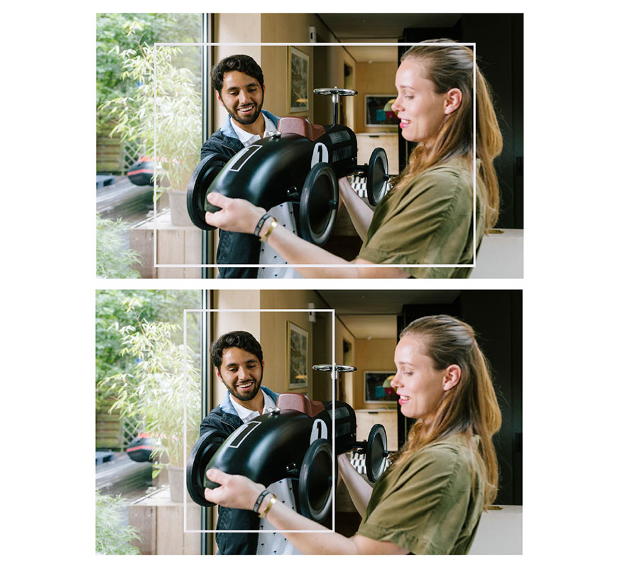 Zorg bij verschillende formaten voor een goede uitsnede waarbij de menselijke emotie goed tot zijn recht komt (zie voorbeeld).